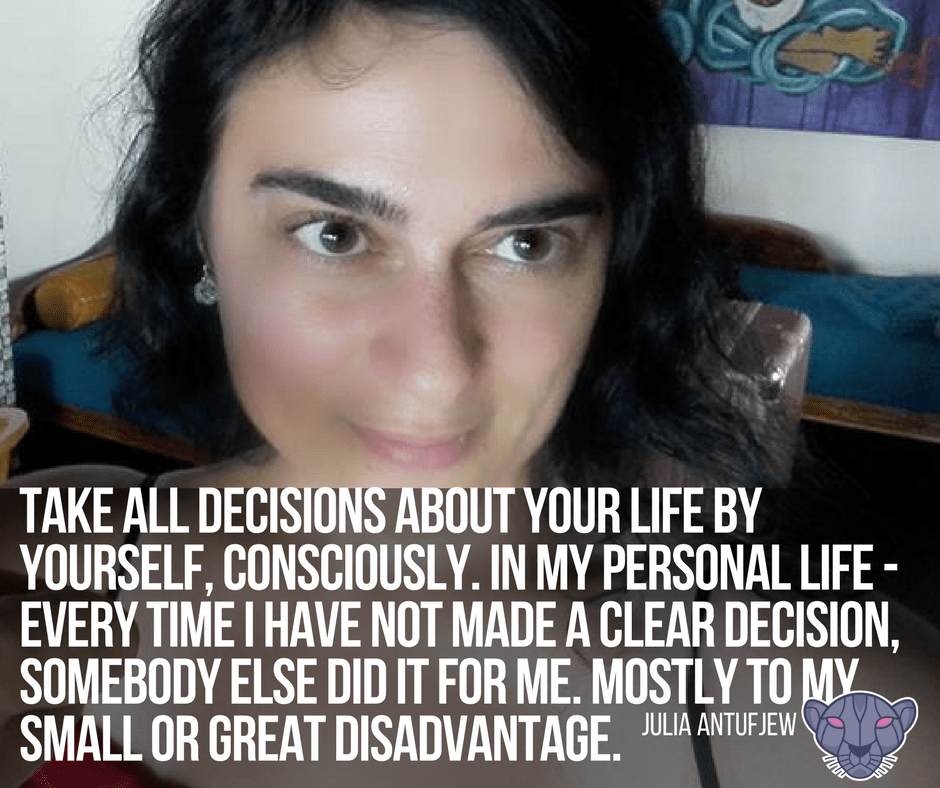 Take all decisions about your life by yourself, consciously. In my personal life – every time I have not made a clear decision, somebody else did it for me. Mostly to my small or great disadvantage.