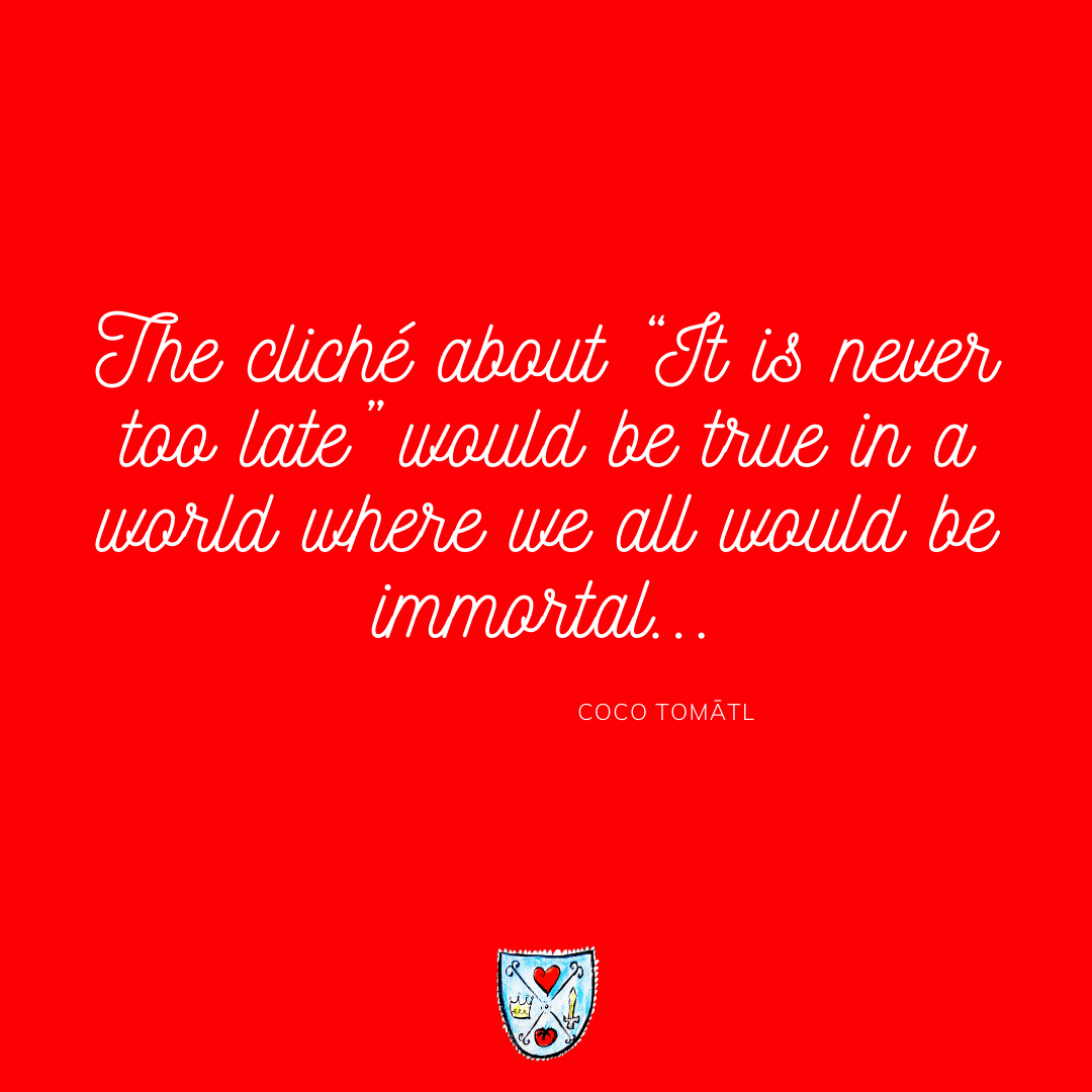Because if you wait long enough, one day it may as well be too late. The cliché about “It is never too late” would be true in a world where we all would be immortal…